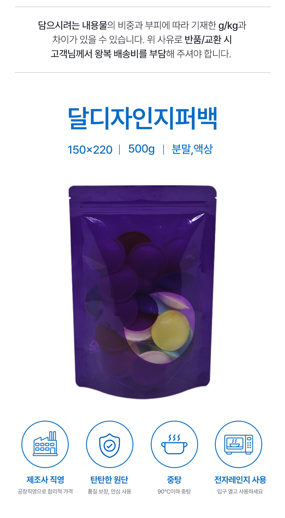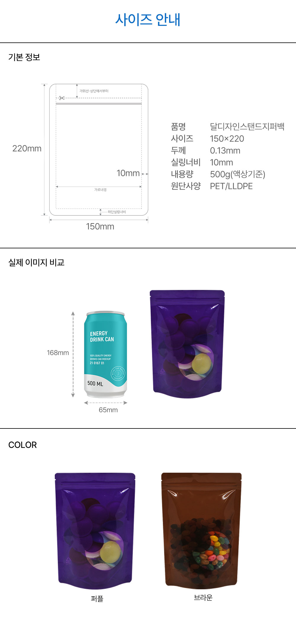 달 디자인 스탠드 지퍼백 150*220/500g
