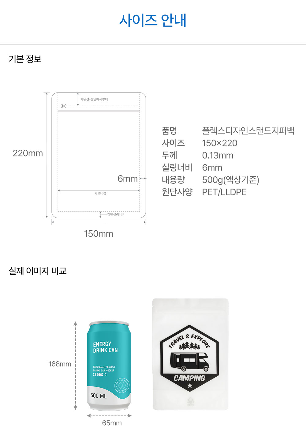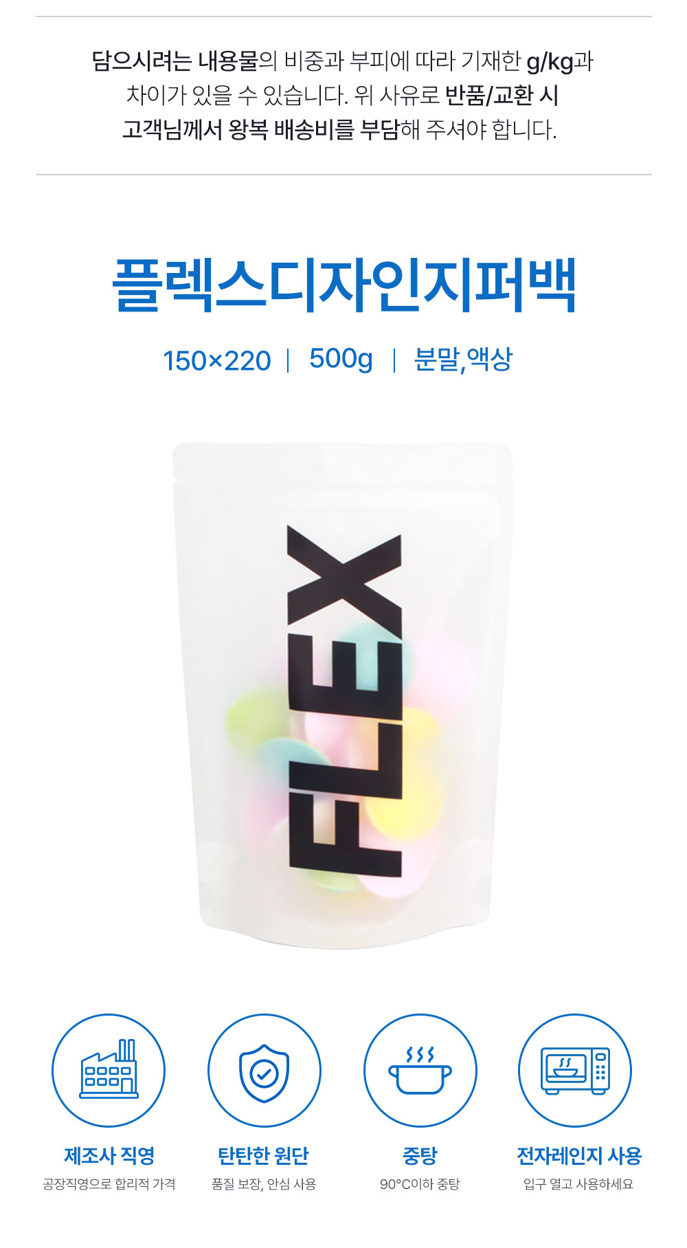 플렉스 디자인 스탠드 지퍼백 150*220/500g