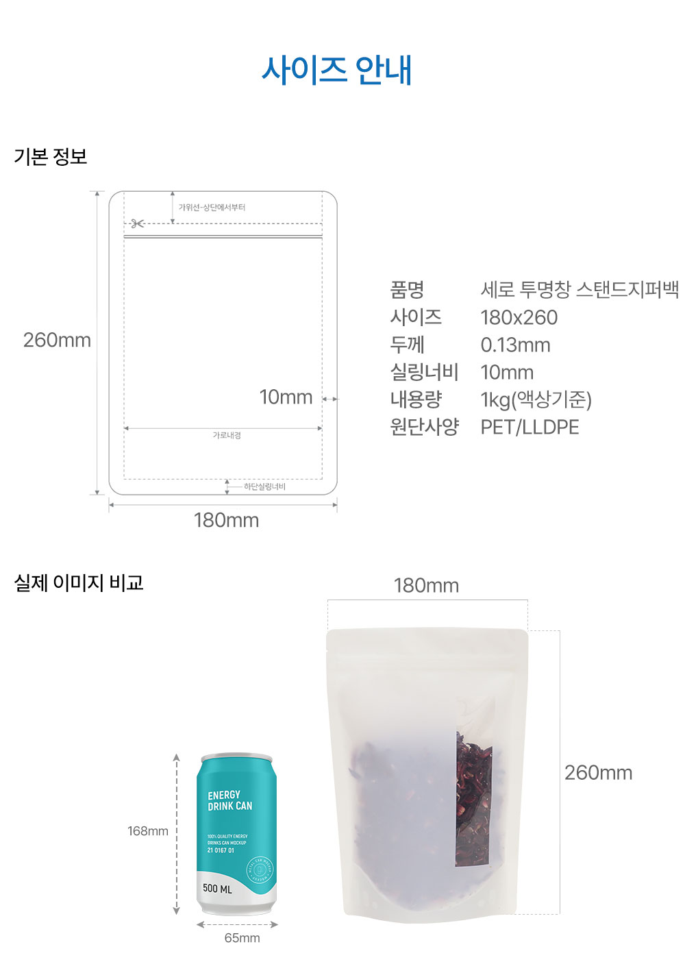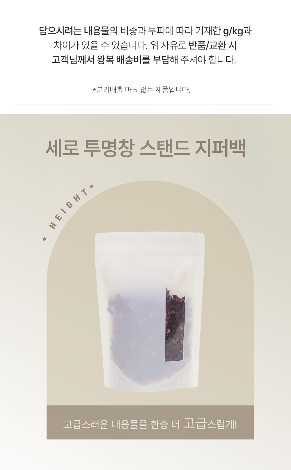 세로 투명창 스탠드 지퍼백 150*220/500g