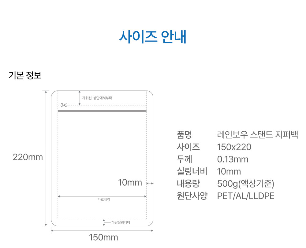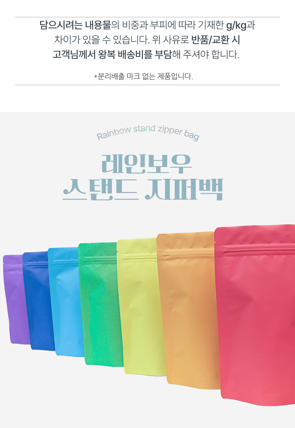 [100매]레인보우 스탠드 지퍼백 150*220
