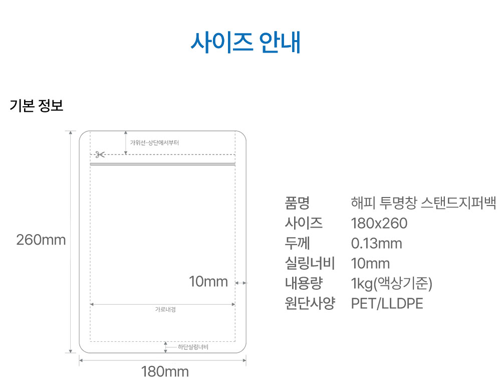 [100매] 해피 투명창 스탠드 지퍼백 180*260