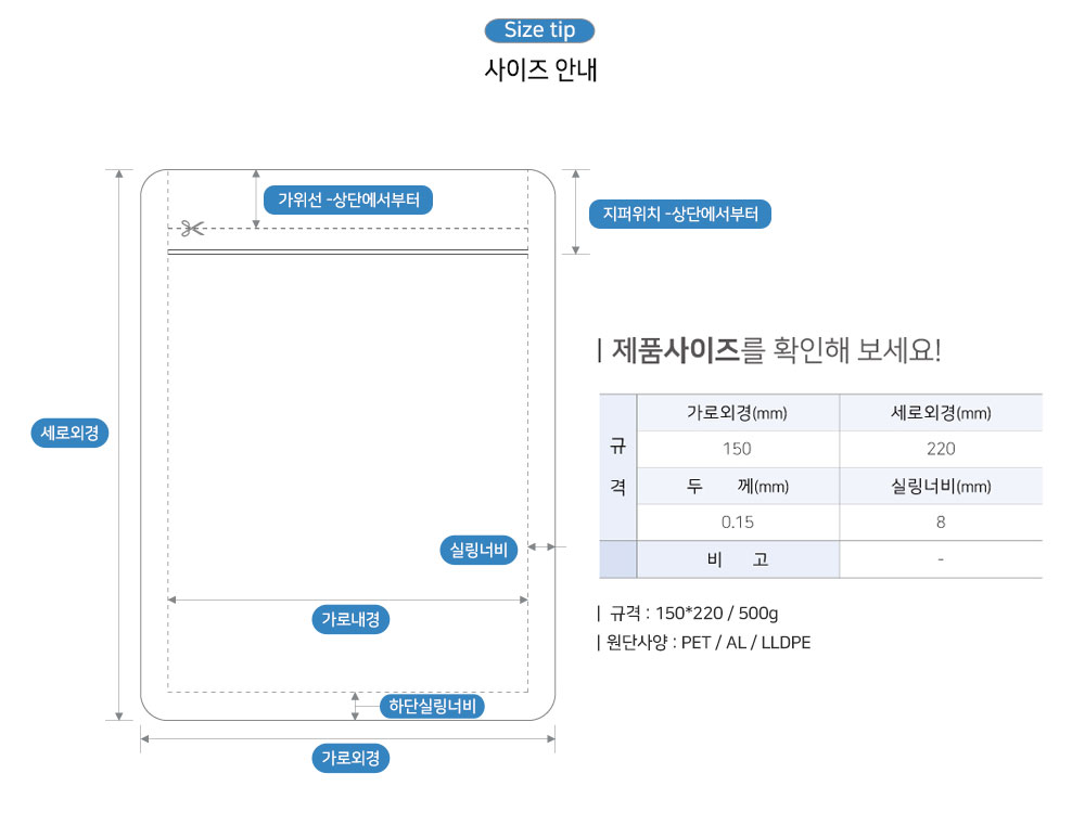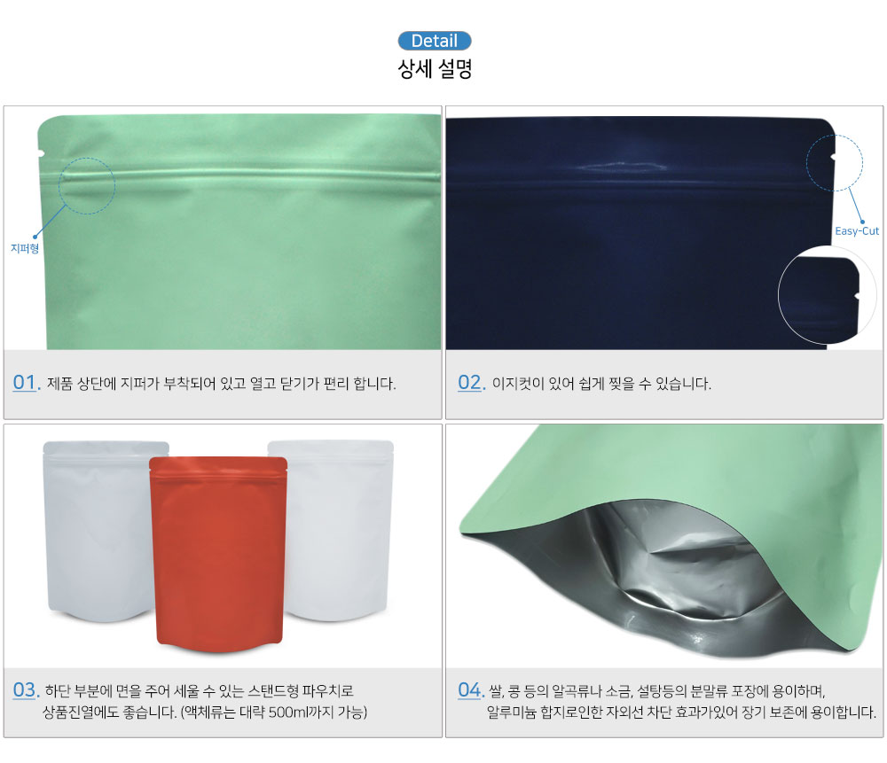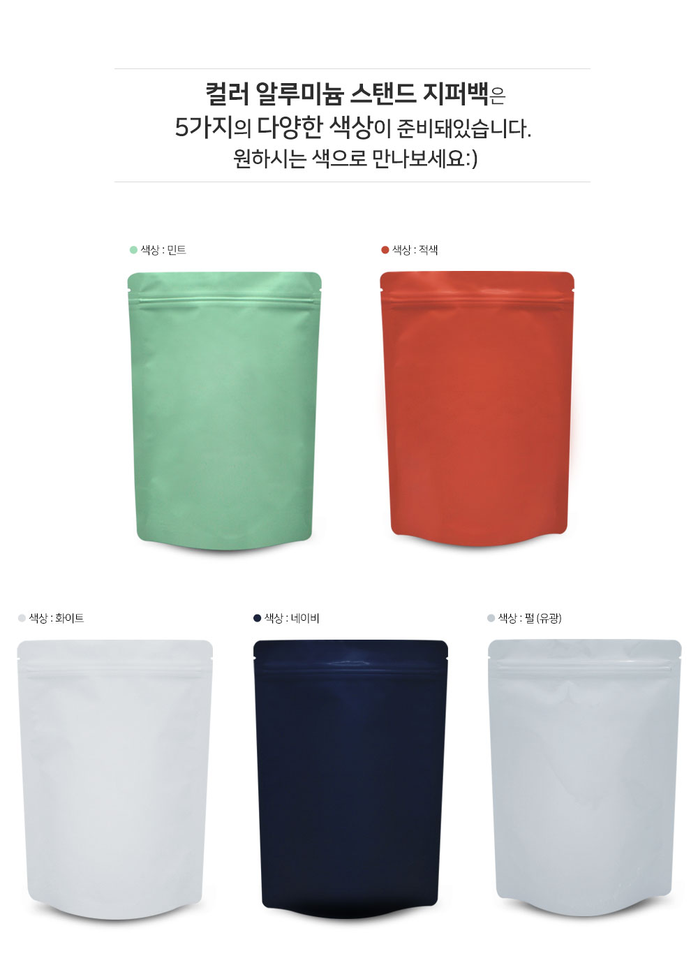 [50매/200매] 컬러 알루미늄 스탠드 지퍼백 150*220/500g