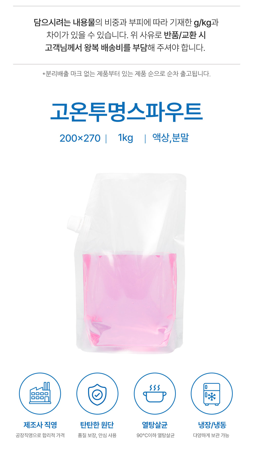 [600매]고온 투명 스파우트 200*270/1kg [15파이/사선/조립/백색캡/수동각]