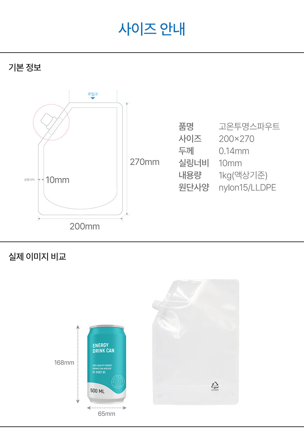 [239원/장] 캡바디를 부착한 내용물이 보이는 투명한 제품 [1000~1200g 가능]