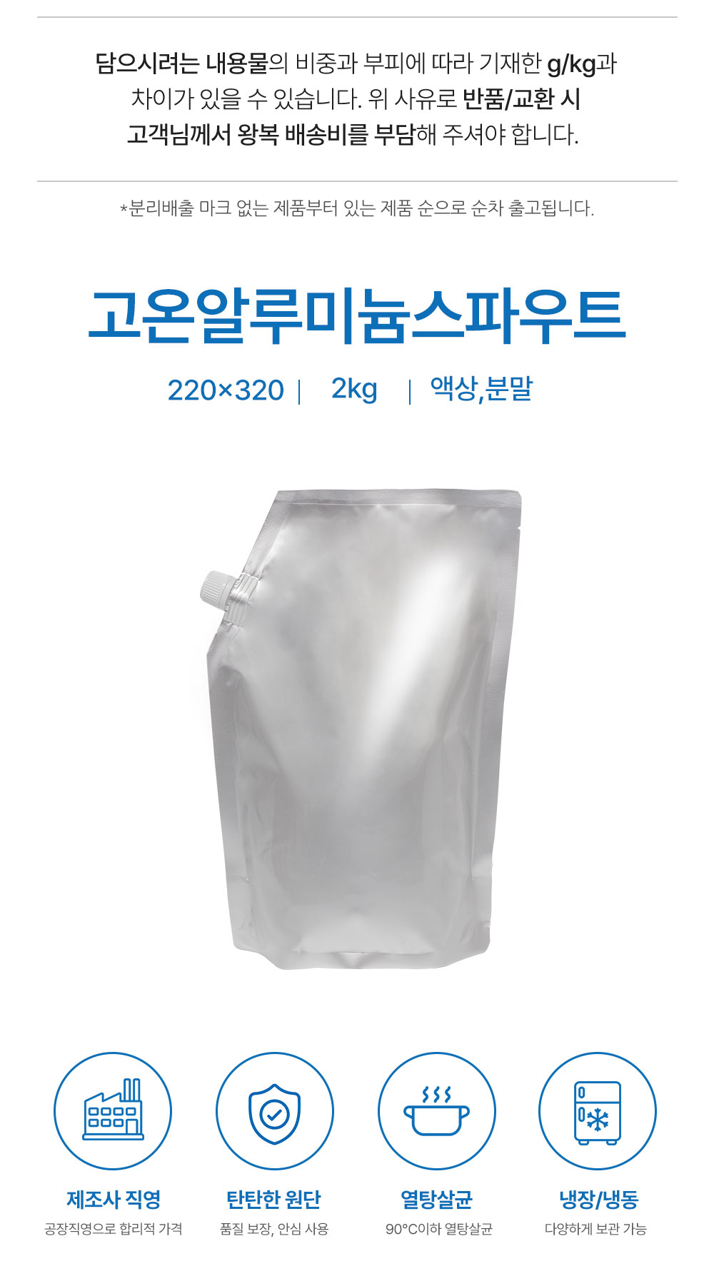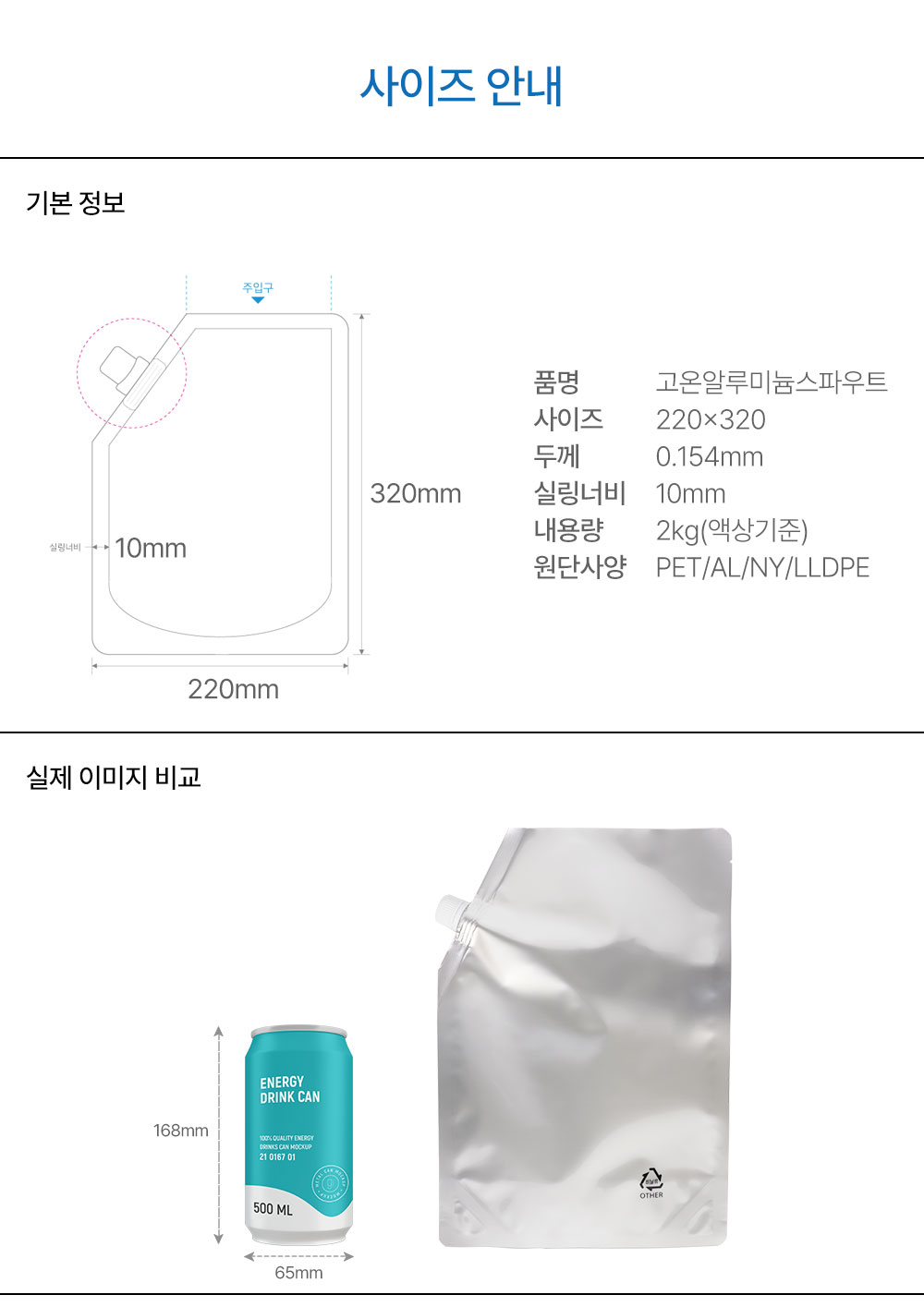 [500매]고온 알루미늄 스파우트 220*320/2kg [15파이/사선/조립/수동각]