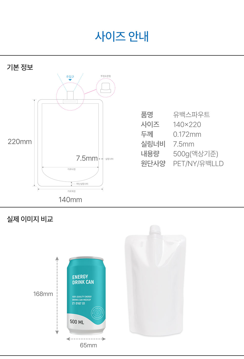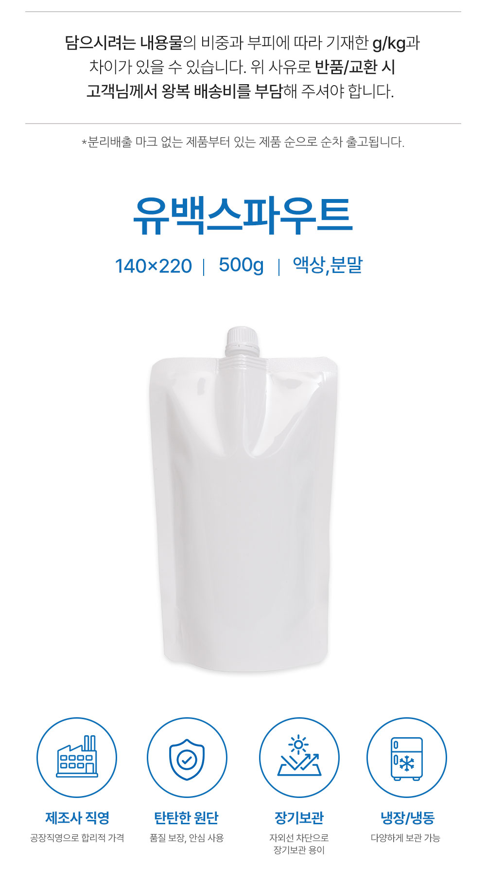 [700매]유백 스파우트 140*220/500g [15파이/12시/비조립]