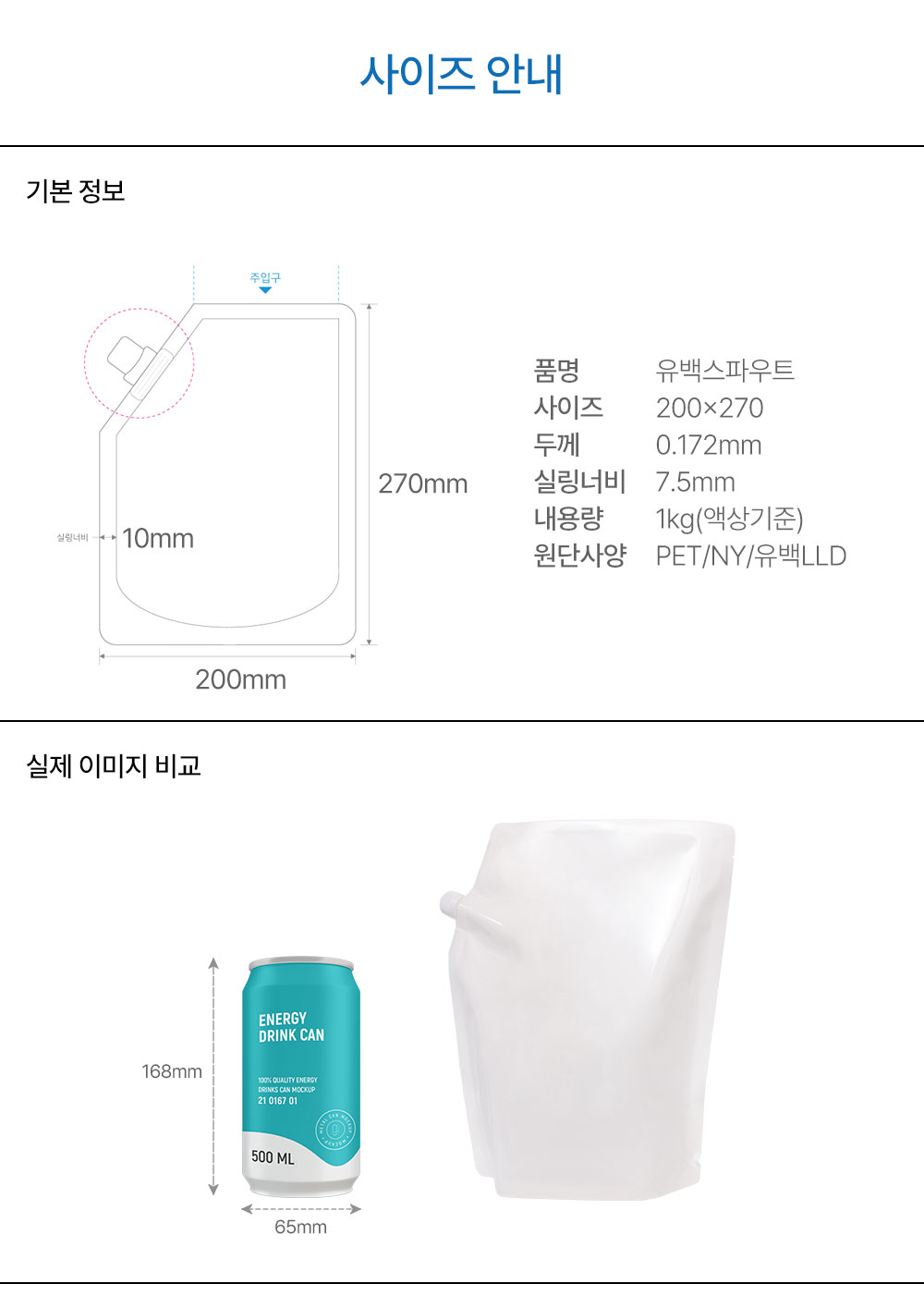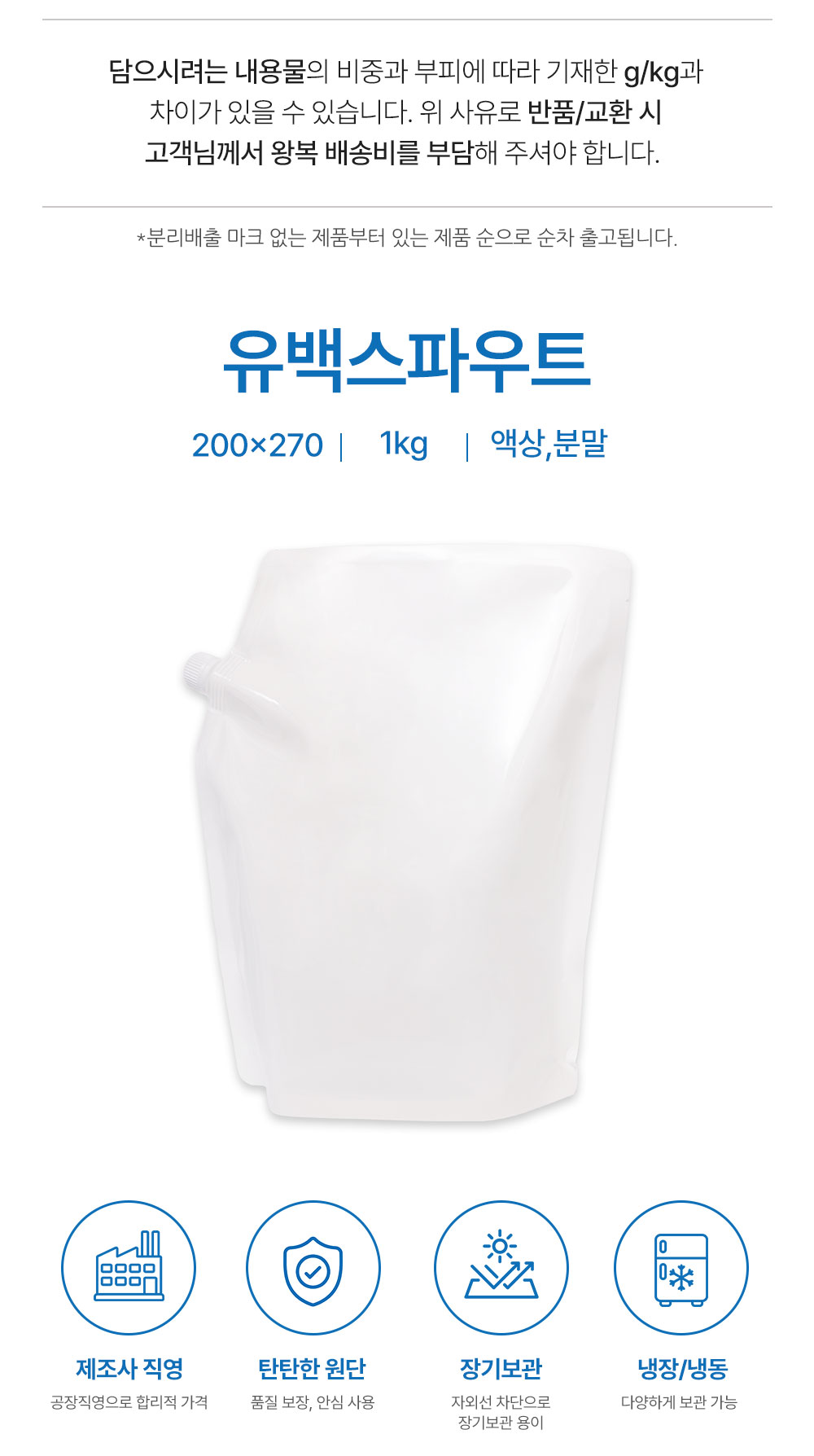 [600매]유백 스파우트 200*270/1kg [15파이/사선/조립/수동각]