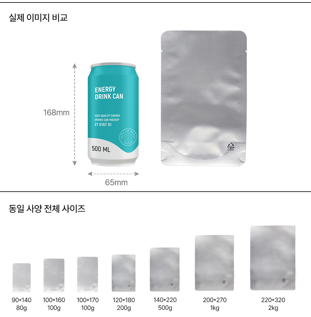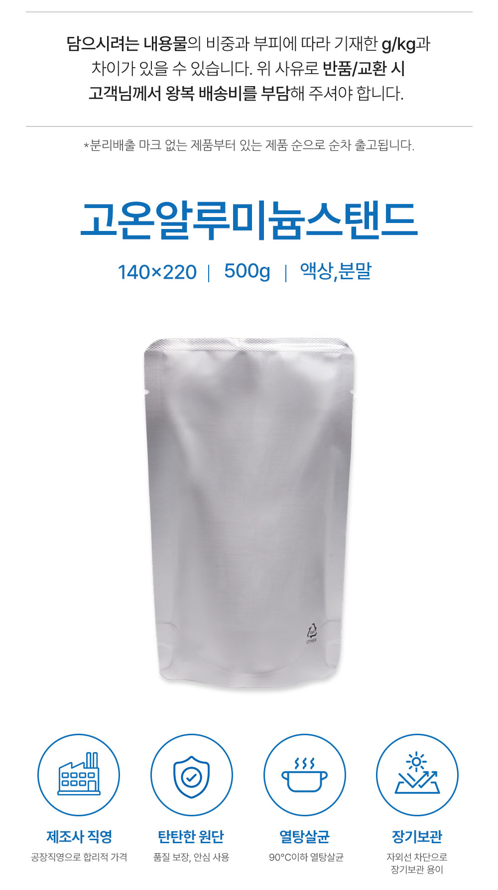 [1800매]고온 알루미늄 스탠드 파우치 140*220/500g